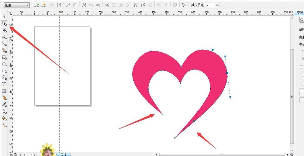 4、选择形状工具,对节点进行调整,做出一个卡通一点的心形,不要这么正规