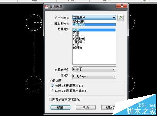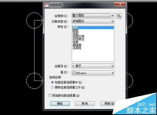 4、选择搜索范围,这里选择已知的图形,应用到“当前选择”。
