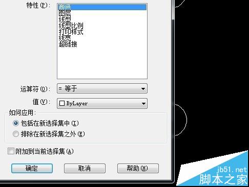 5、选择特性,有颜色、图层、线宽、线性比例等等。