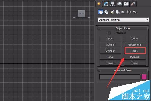 3、选择tube命令,在顶视图里创建一个tube物体,如图所示: