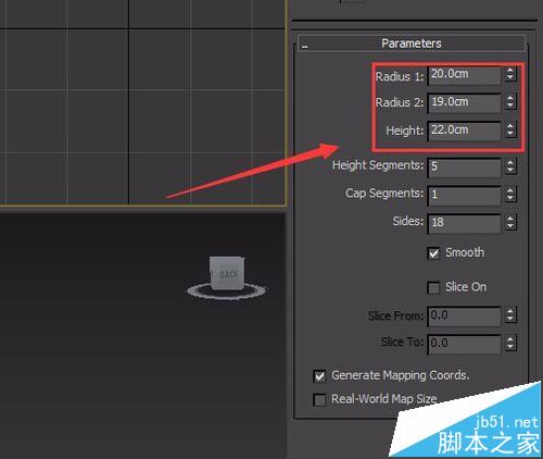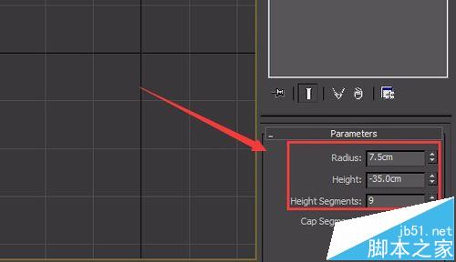 9、选择创建的cylinder物体,在modify里修改其参数如图所示: