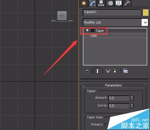 5、选择修改完成的tube物体,给该物体添加一个taper修改器,如图所示:
