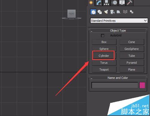 8、选择cylinder命令,在顶视图里创建一个cylinder物体,如图所示: