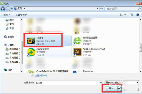 6、在cdr空白处点击左键,图片即可导入进来了。