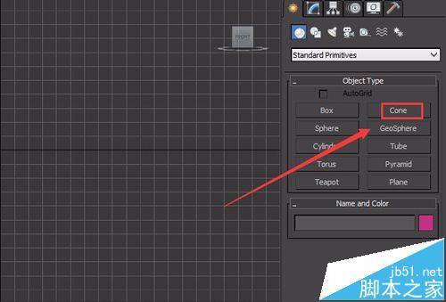 3、点击cone命令,在顶视图创建一个cone物体,如图所示: