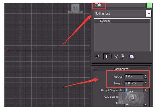 7、选择创建的这个cylinder物体,在modify里修改名字为支架,并修改其参数如图所示: