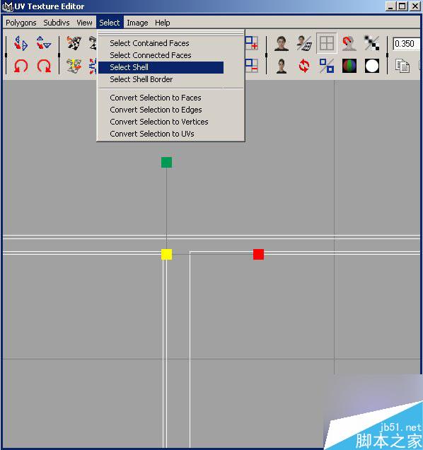 以上命令会选中该uv所在面积,选中后,旋转该面,使相临边对位