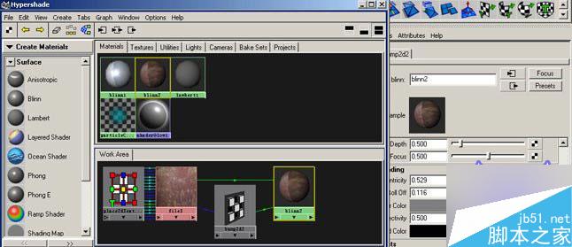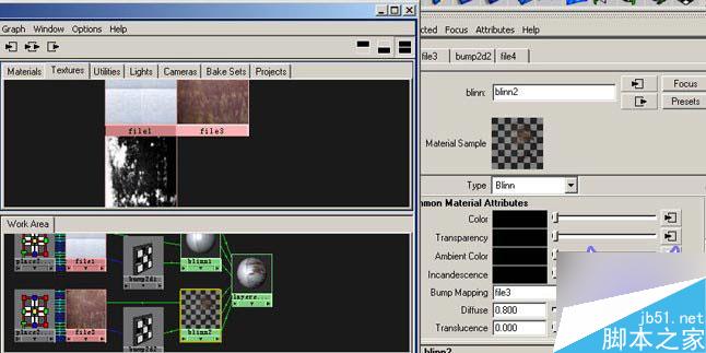 发现新旧材质处于同一平面,现在进行脱皮处理,把遮照贴图用中键拖拽到新材质的bunp节点上,bump值为-0.1
