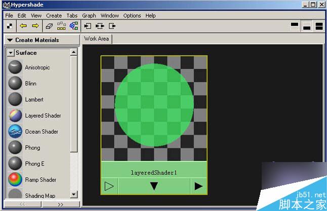 然后用中键把两个材质拖拽到该绿球中,并把原来的绿色小方块干掉。然后把作旧材质放到最前面(用中键拖拽)