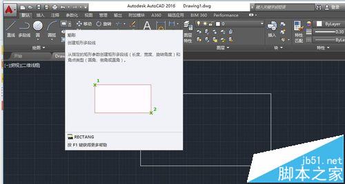 2、找到我们主界面上的矩形工具。然后我们先在图纸上画出一个矩形。当然这个作为我们的阴影范围。