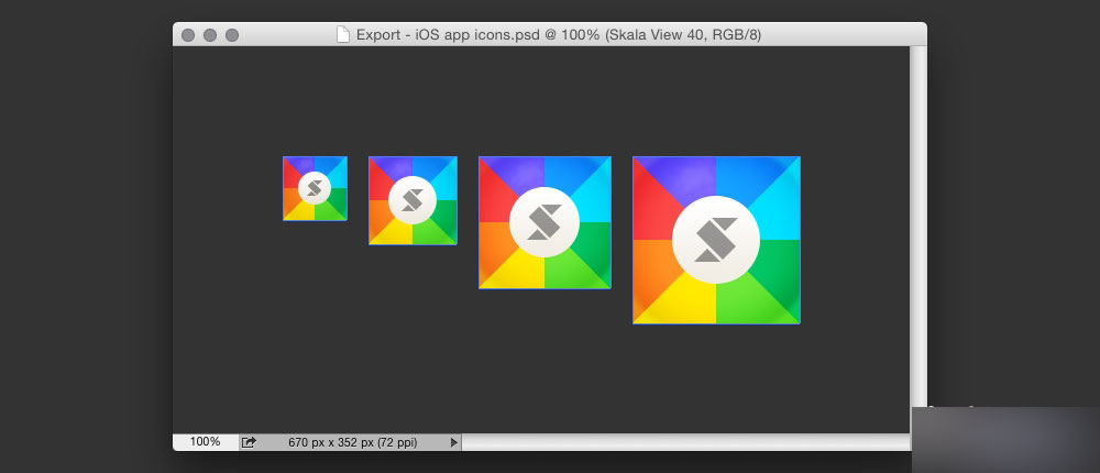 4 种基础尺寸加上应用商店尺寸 1024×1024 像素,工作量直线减半。另有一个好消息,要是哪天苹果发布 3x 尺寸的 ipad,那你基本也已经完成了适合该规格的图标。