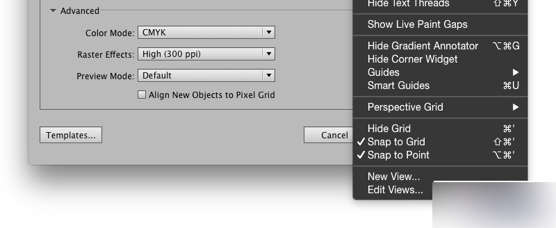 对齐网格设定我不太喜欢 illustrator 的对齐像素设定,不过勾选"视图→对齐网格"后的效果还是非常理想的,记得关闭对齐新对象到像素。对齐新对象到像素可在新建文档或变换面板中可找到。