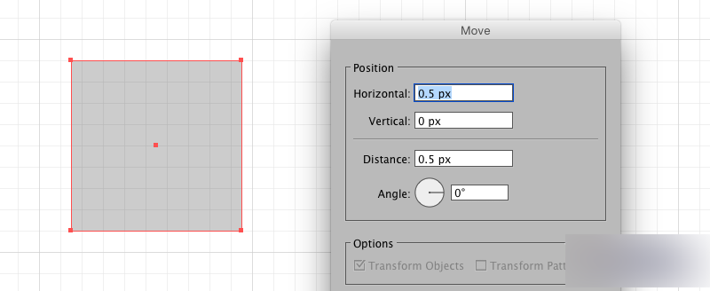 如果你需要对像素作非常细微的调整,可以使用移动面板(对象 → 转换 → 移动,或直接按回车键)。
