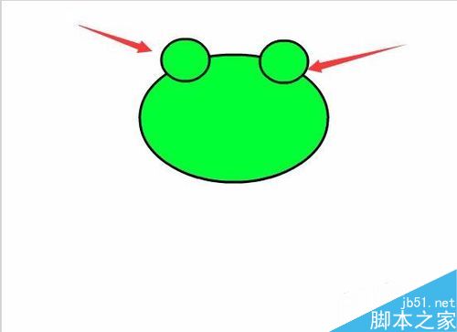 5、再次选择椭圆工具,分别绘制两个椭圆作为青蛙的眼睛,如图所示: