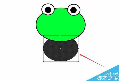 8、再次选择椭圆工具,在头部的下面绘制一个椭圆,作为青蛙的肚子,如图所示: