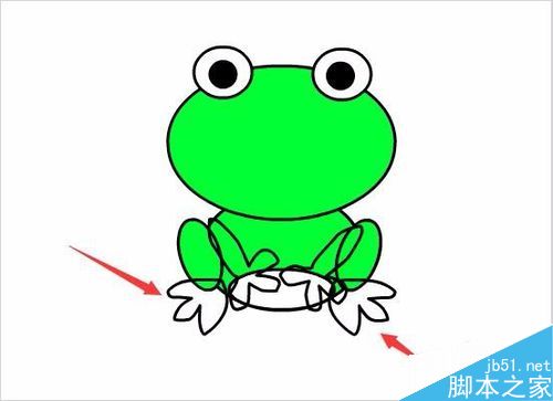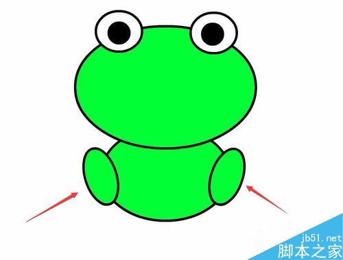 17、选择这条直线,调节其形状,这样我们的卡通青蛙就制作完成了,如图所示: