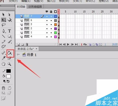 14、在工具箱里找到油漆桶工具,如图所示: