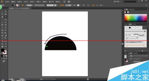 1、首先我们用”椭圆工具“绘制一个椭圆或者圆形。然后选择“直接选择工具”选中椭圆的下半部分点击删除。