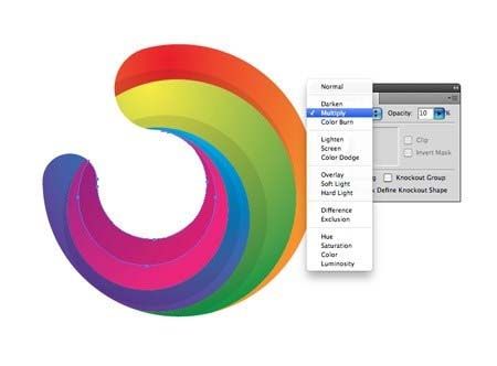 15、重复此过程,对于其他段,然后给这些形状的黑色填充用乘法的10%的不透明度设置。
