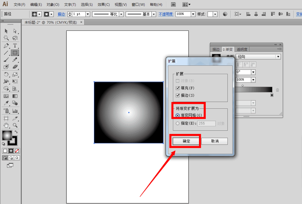 这一节我们来讲解另外一种创建渐变网格的方法,那就是通过扩展方式来创建渐变网格。详细的操作步骤如下: