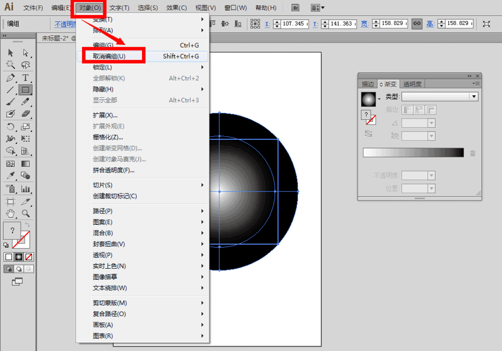 9、接着用鼠标点击菜单栏里的”对象“——”取消编组“按钮