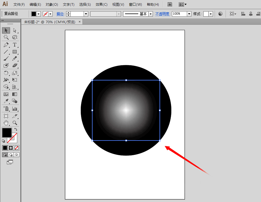 10、取消编组以后,就使用选择工具,选中图形中间的矩形路径,点击键盘上的“delete”键,删除它