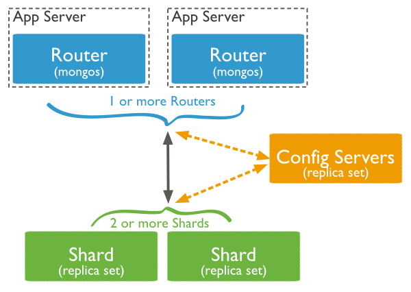 在MongoDB(版本 3.2.9)中,分片集群(sharded cluster)是一种水平扩展数据库系统性能的方法,能够将数据集分布式存储在不同的分片(shard)上,每个分片只保存数据集的一部分,MongoDB保证各个分片之间不会有重复的数据,所有分片保存的数据之和就是完整的数据集。分片集群将数据集分布式存储,能够将负载分摊到多个分片上,每个分片只负责读写一部分数据,充分利用了各个shard的系统资源,提高数据库系统的吞吐量。