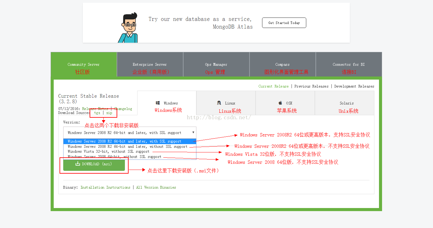 MongoDB提供了可用于32位和64位系统的预编译二进制包,你可以从MongoDB官网下载安装,MongoDB预编译二进制包下载地址:http://www.mongodb.org/downloads