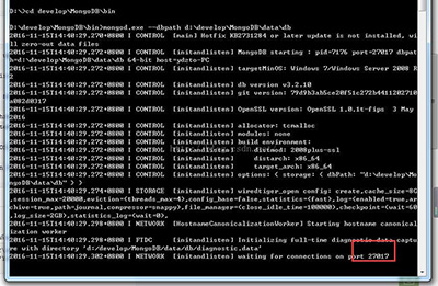 为了从命令提示符下运行MongoDB服务器,你必须从MongoDB目录的bin目录中执行mongod.exe文件。