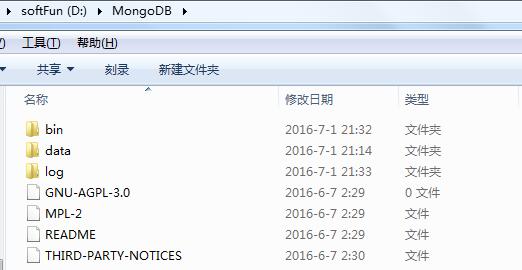 在D:\MongoDB里面新建 log (用于记录日志)和 data (用于存数据)文件夹