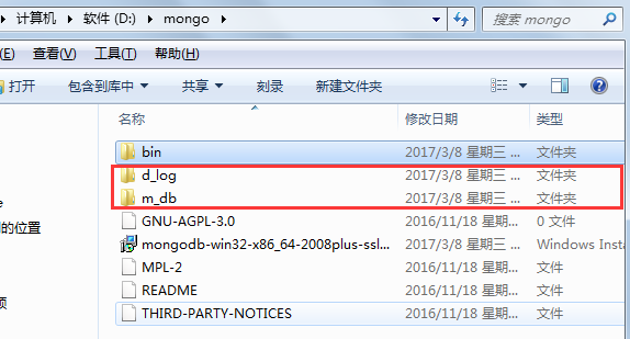 m_db用于存放数据库,这里要注意,日志存放要建立一个文件而不是文件夹,我这里在d_log目录下建立了d_log.log文件。