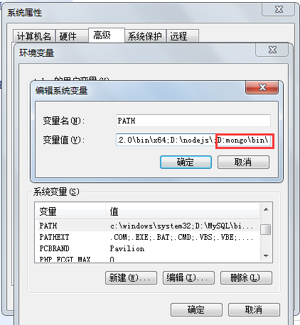 我们并不想每次启动mongodb都去找bin目录,因此我们需要配置下环境变量,也就是在path后面添加你的bin目录