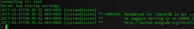$ cd /usr/local/mongodb/bin/ /usr/local/mongodb/bin$ ./mongo