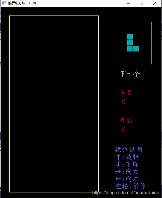 outtextxy(150,200,_T("俄罗斯方块"));
