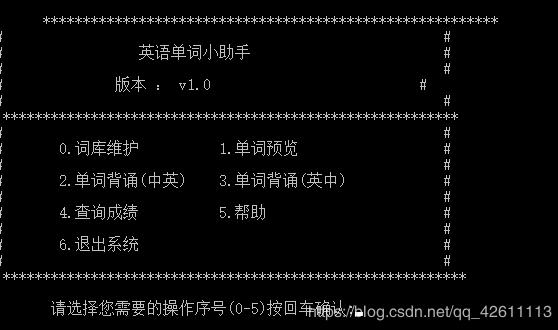 printf("\n本系统主要实现英语单词学习的功能。用户可对词典文件中的单词进行预览,增删改查。");