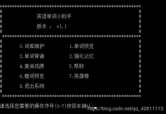 printf("# 6.错词预览 7.英雄榜 #\n");