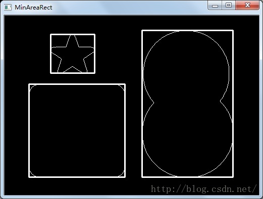 使用minAreaRect和minEnclosingCircle方法分别求最小外接矩和圆: