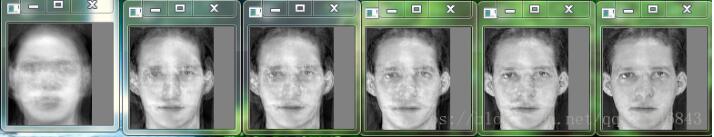 3、对第一张人脸在特征向量空间进行人脸重建(分别基于前10,20,30,40,50,60个特征向量进行人脸重建)
