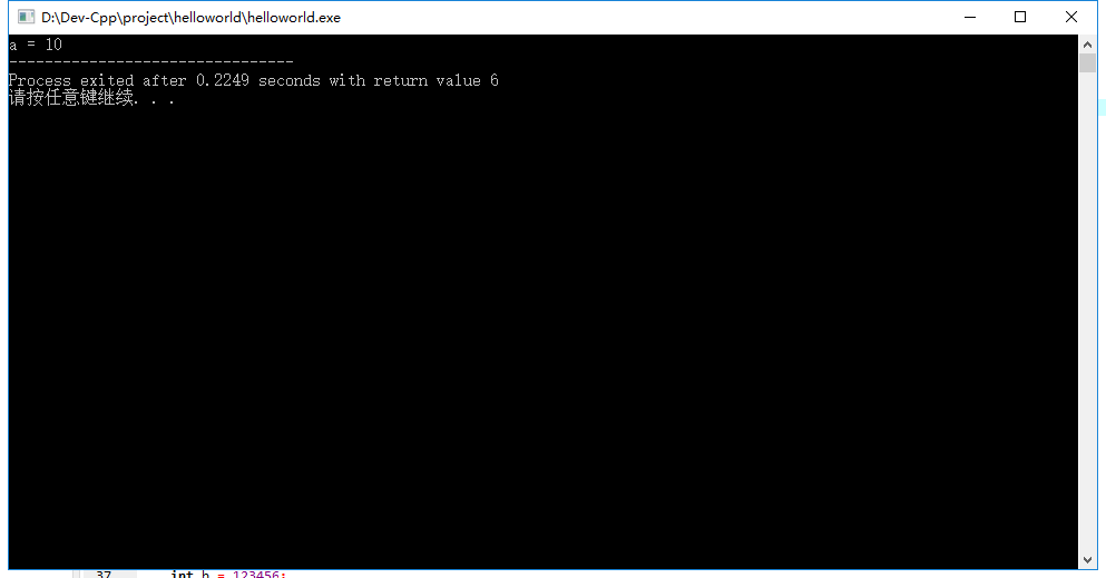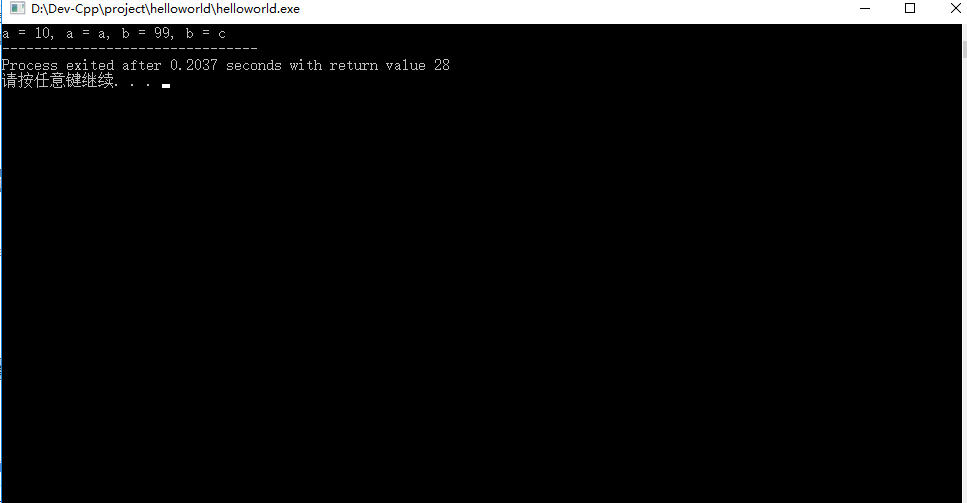 如何查看变量的值,可以用debug的办法(后续再讲解用Dev-C++上断点调试办法),也可以通过printf这个C库函数查看,代码如下,运行结果如图5.1,