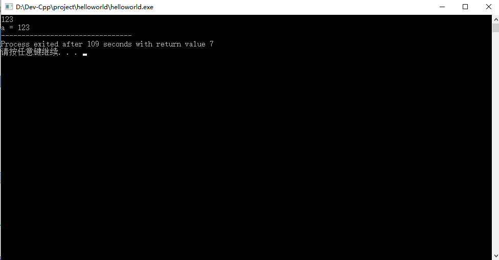 从结果上可以看出,输出的“a = ”加上刚才键盘输入的123一起在屏幕上显示出来,这就是最基本的输入输出函数的使用了。下面讲解这段程序: