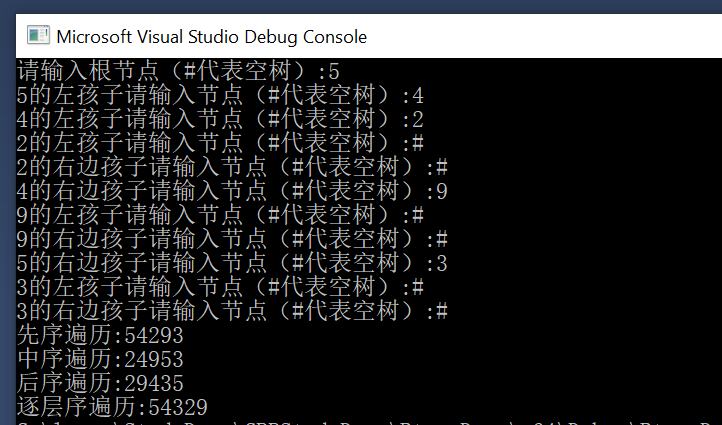 btree.postOrderTraversal(btree.root); cout << endl;//后序遍历
