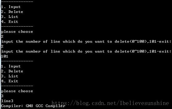 printf("input the number of line which do you want to delete(0~100),101-exit:\n");