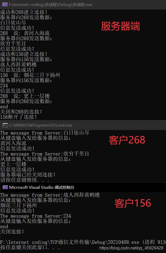 到此这篇关于C++多线程实现TCP服务器端同时和多个客户端通信 的文章就介绍到这了,更多相关C++ 服务器端和多个客户端通信 内容请搜索以前的文章或继续浏览下面的相关文章希望大家以后多多支持!