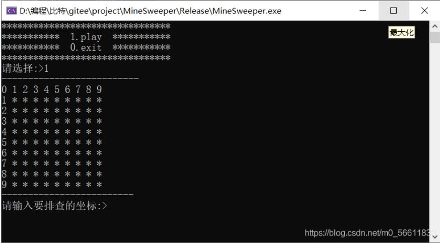 //DisplayBoard(mine, ROW, COL);//测试用,待会儿删