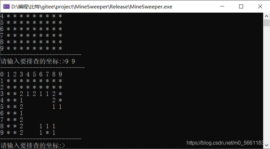 这时,由于每次扫出无地雷位置的数量不确定,所以把win的地址传给函数,每确定一个位置win+1。