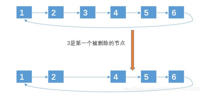 新的环中只有 n - 1 个节点。且删除前编号为 m + 1, m + 2, m + 3 的节点成了删除后编号为 1, 2, 3 的节点。