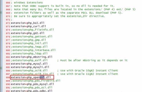 2、打开php.ini配置文件;开启php_openssl.dll扩展;