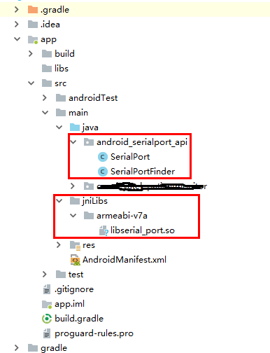 注意这里的libserial_port.so最好直接新建一个jniLibs放进去(必须这个名字),不要放到libs目录下,不然就要修改build.gradle文件。最恶心的是,如果把.so文件放入了libs中且忘了修改build.gradle,在调用串口函数的时候就会出现闪退,而且这个程序编译时还不会报错(???)。