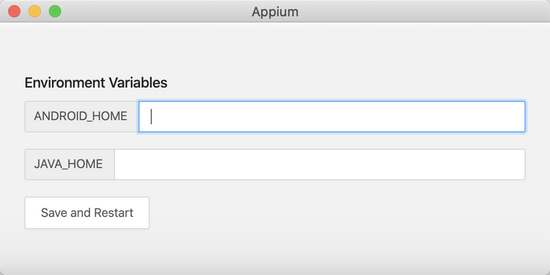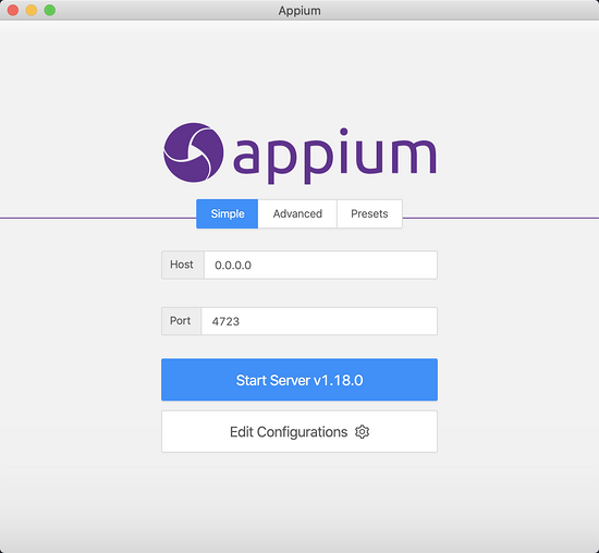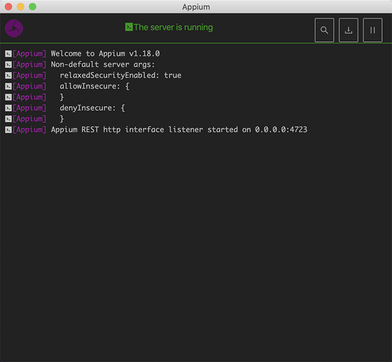 安装完成后启动 appium,host 和 port 默认即可,接着点击下面的配置按钮进入配置页,设置完成 android home 和 java home 后直接启动 server 就可以了。
