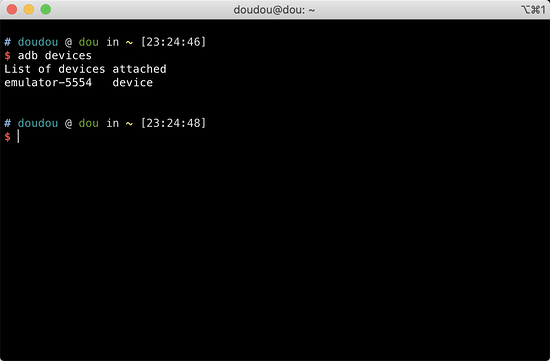 接下来,我们开始完善 client 端,其实就是代码而已,直接调用 api 即可。因为我们是要通过 appium 来操控模拟器上的 app,所以需要先将模拟器启动。命令行输入 adb devices 如果看到以下信息,则说明模拟器是正常的。